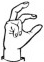 На ћирилици написано АРСЕНИЈЕ БЕЛЕНЗАДА састоји се из 17 слова [?]. Исписано ћириличном једноручном азбуком за глувонеме: